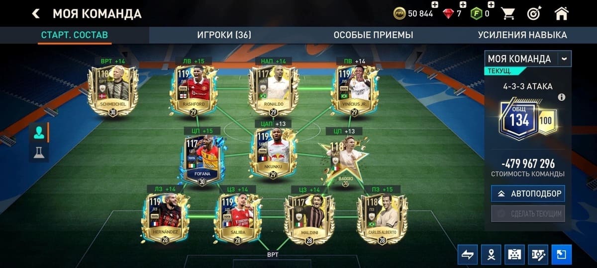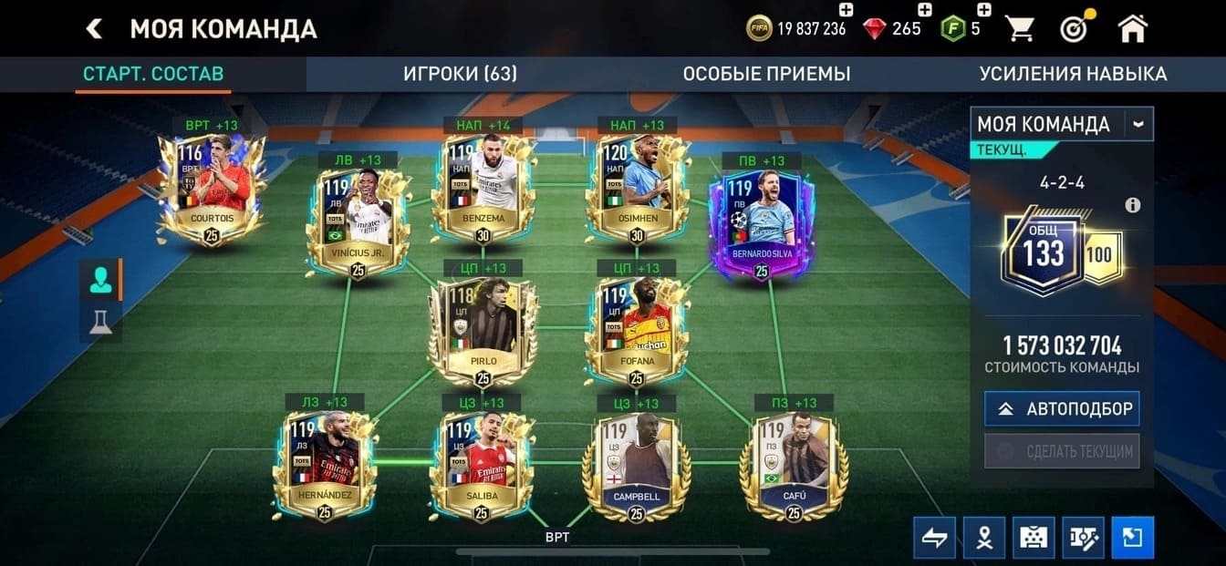 💰Золото: 9 749 000📗Fifa-point: 15🛑880💪 Игроки : 27