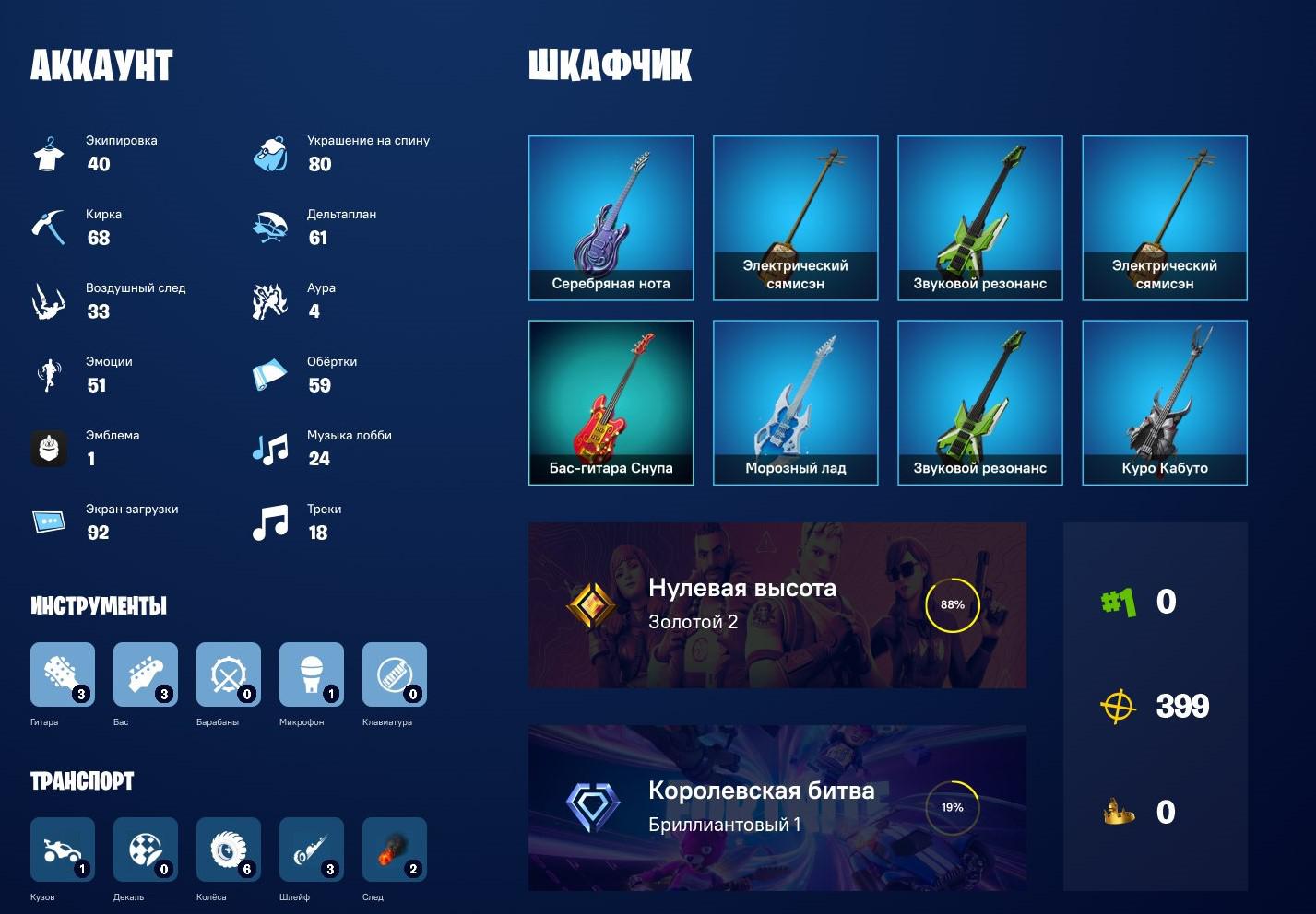 ⭐️ Боевой пропуск: 2-11 сезон⚔️ PVE💥 Всего скинов: 120🔥 Топ скины: 10+💰 1208V Bucks