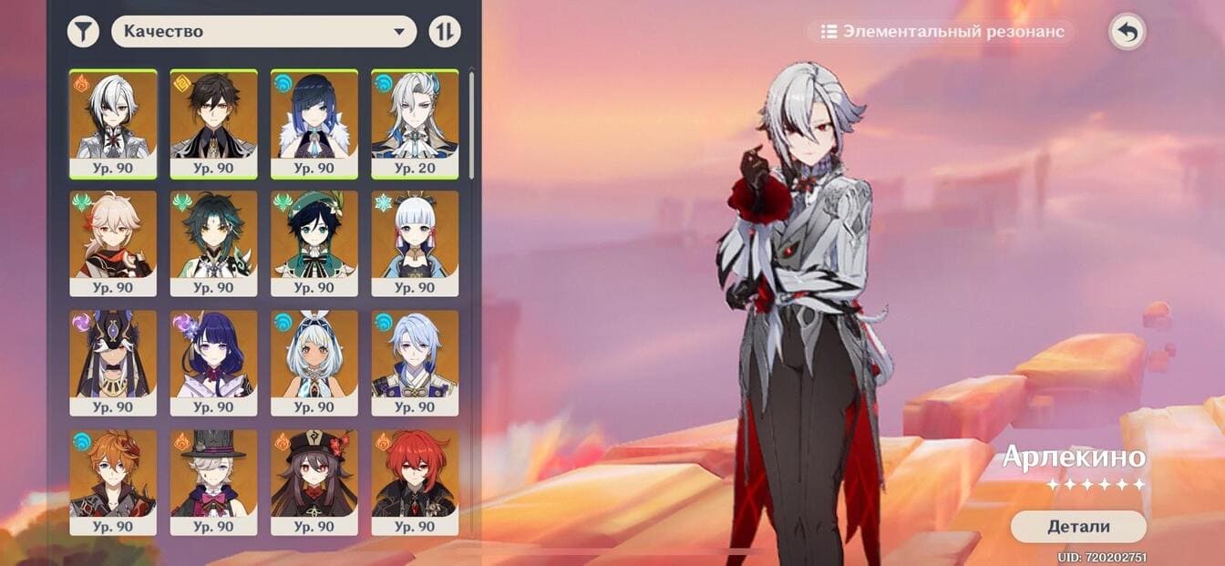 📈 Ранг: 60 🧍‍♀️ Персонажи: Арлекино, Нёвиллет, Лини, и другие ✨ Примогемы: 435