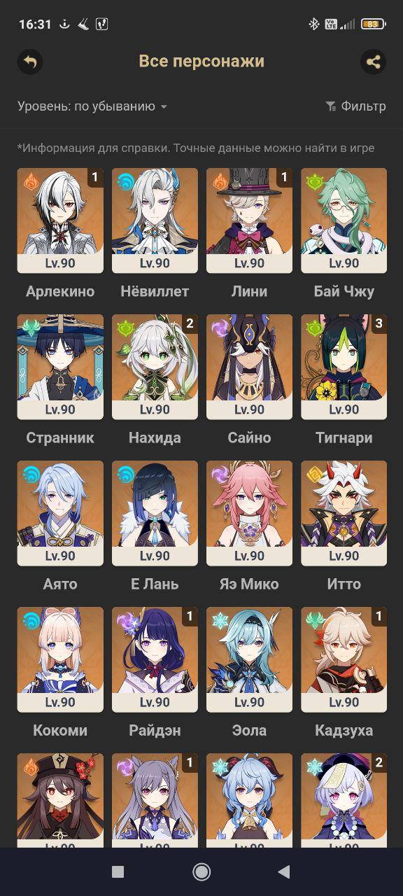 📈 Ранг: 58 🧍‍♀️ Персонажи: Арлекино, Нахида, Тигнари и другие ✨ Примогемы: 484