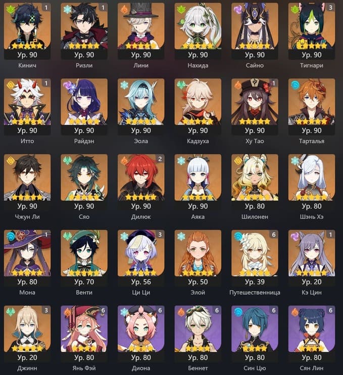 📈 Ранг: 46 🧍♀️ Персонажи: Тарталья, Мона, Кли, Дилюк и другие ✨ Примогемы: 680